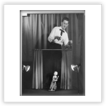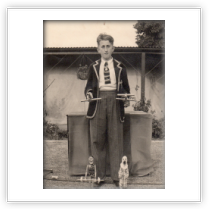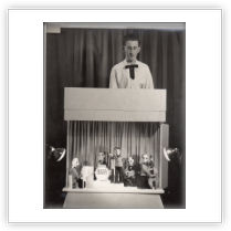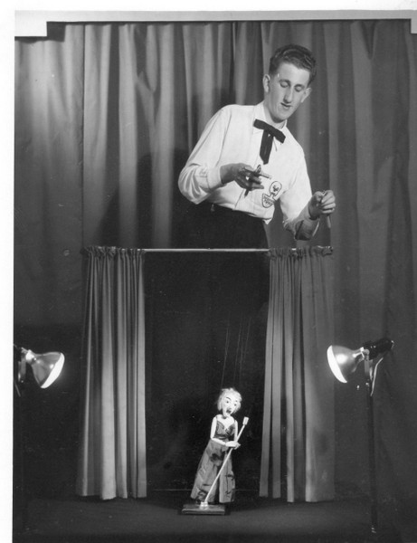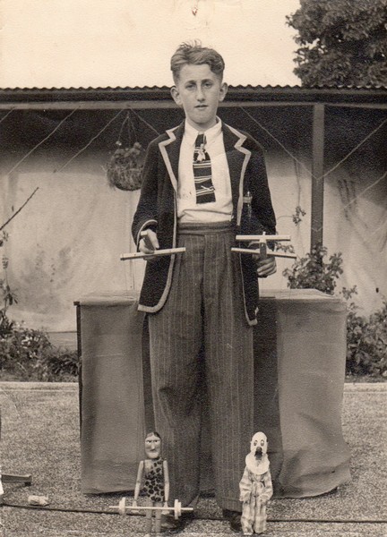 It all started when I was about 12 years old and purchased three Pelham String Puppets. I was always interested in Variety Theatre and summer season shows in the Thanet area where my family lived, particularly Puppet Theatre shows which I always enjoyed. I bought several books on Puppetry and decided to make my own string puppets (Marionettes) that seem to be very popular at that time. My Father being a carpenter and my Mother, a seamstress, was a great help, which meant when I left school at the age of 15 years, I was ready to present my own Puppet Theatre Show in Ramsgate for the summer season (1949). In fact before leaving school I did my first live show at a local Garden Fete.
